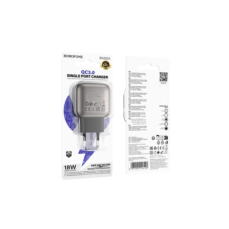 با شارژر دیواری 18 وات بروفون مدل BAS52A، دستگاه‌های خود را با سرعت و کارایی بالا شارژ کنید. این شارژر با تکنولوژی QC3.0، زمان شارژ را به حداقل می‌رساند و از حفاظت چندگانه برای امنیت دستگاه‌های شما برخوردار است. طراحی کم‌حجم و سبک آن را برای استفاده در هر مکانی ایده‌آل می‌سازد. بهترین انتخاب برای کاربران حرفه‌ای!