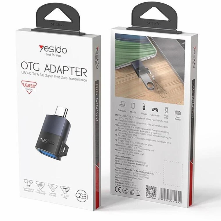 تبدیل OTG USB-C برند YESIDO مدل GS31 در رنگ مشکی، راهحلی کارآمد برای اتصال دستگاههای USB به گوشیها و تبلتهای USB-C شماست. این محصول با طراحی شیک و مقاوم، انتقال دادهها و شارژ را به سرعت و با امنیت بالا انجام میدهد. همراه همیشگی شما برای داشتن اتصالات بیدردسر و مطمئن!