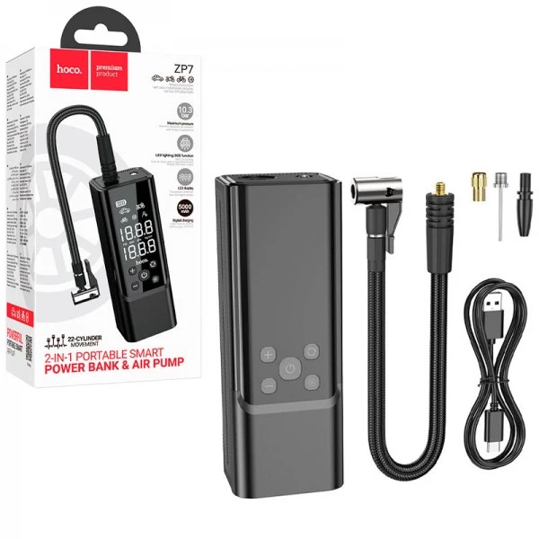 کمپرسور هوا و پاوربانک Hoco مدل ZP7، همراه همیشگی شما در سفر و زندگی روزمره! با قدرت بالا و طراحی شیک در رنگ مشکی، این دستگاه دوکاره باد لاستیکها و شارژ گوشیها را به راحتی انجام میدهد. کارایی و اطمینان را با Hoco ZP7 تجربه کنید و همیشه آماده باشید!